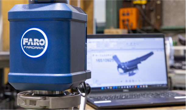 FARO社製の多関節式3次元測定機「Quantum X FaroArm®シリーズ」を保有。0.04mmの測定精度を持ちながら、自在な方向を向けられることに加え、コンパクトで持ち運びできることが特長です。お客様の生産現場へ持ち込み、狭いスペースに設置して使用できます。「ボディ部品の複雑な3次元曲面の精度が出ない」といった問題があれば、連続する各工程にてスキャニング。目視では判別できない曲面形状の誤差を数値化して、問題点をフィードバックすることが可能です。そこから設備の改修やセンサ・制御プログラム、ロボットティーチングなどの対応も当社なら一貫して対応できます。当社では測定機を2018年に導入し、治具の精度調整を皮切りにこれまで様々なシーンで活用してきました。